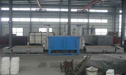 臺(tái)車上鋪設(shè)高強(qiáng)度耐高溫的鑄鋼爐底板,以承載工件之用。為了防止工件加熱后產(chǎn)生的氧化皮通過爐底板間 的縫隙落入加熱元件周圍而造成加熱元件損壞,爐底板與爐體接觸處采用插入式接觸。為保證正常使用,需要經(jīng) 常吹掃臺(tái)車爐底板下方的氧化皮,一般每周吹掃一次,吹掃時(shí)將爐底板吊起,用壓縮空氣將電阻絲槽內(nèi)的氧化皮 屑吹掃干凈,注意防止氧化皮卡在爐絲內(nèi)引起短路。