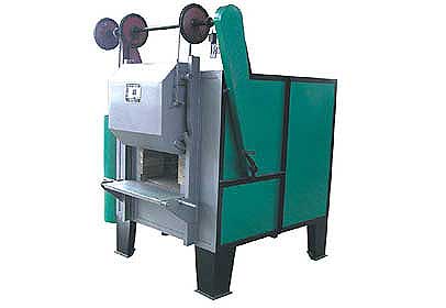 箱式電阻爐爐殼系由角鋼及鋼板密封焊接而成,爐殼內是一個由各種耐火材料混合砌成的爐膛,外殼與爐膛之間的空隙部分填滿了保溫用的蛭石粉;加熱元件是由高電阻合金絲繞成螺旋圈,此螺旋圈安置在爐膛二側爐壁及爐底的擱磚上(1200℃電爐根據大小還在爐后墻以及爐門上布置電阻絲),被加熱工件放在爐膛內的爐底板上,950℃電爐為鉻錳氮爐底板,1200℃電爐為碳化硅爐底板。爐門的升降是通過手搖鏈輪來進行的,爐門左側的一平衡重錘是平衡爐門重量的,爐門口設有密封槽,內填石墨石棉盤根,爐門的密封是有壓螺桿手動壓緊。在爐頂上裝有供滴注甲醇用的三頭滴量器和流量計,在爐門上部裝有一行程開關,該裝置是與爐門啟閉作聯鎖的,當爐門打開時電爐電源即被切斷以保證操作人員的安全。在爐頂上裝有二支熱電偶,一支為控制爐膛的工作溫度,另一支為超溫保護。