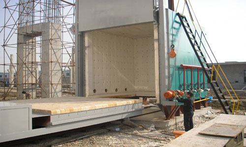 5、臺車耐火砌體采用高鋁定型磚結(jié)構(gòu),與爐體密封效果好,耐壓強(qiáng)度高。臺車面擱置墊鐵供堆放工件用。臺車幫板全部采用澆筑件,保證車體不變形及耐用性。爐車與爐襯的密封采用耐火纖維密封塊電動推桿自動壓緊結(jié)構(gòu)。側(cè)密封的開、閉與爐車進(jìn)出連鎖。